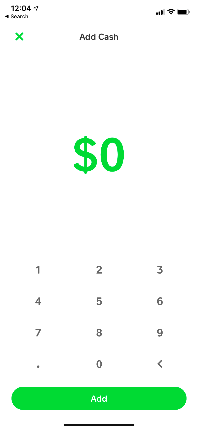 The next screen shows a number pad that allows you to enter the amount of cash you want to add to Cash App. Assuming you already have a bank account linked, just type the amount in and tap “Add”.