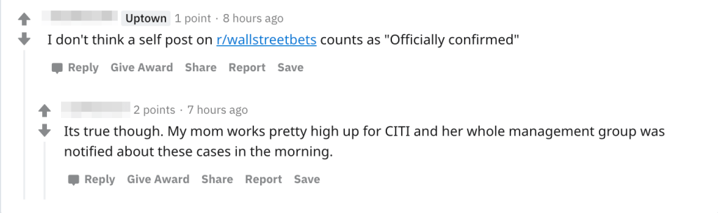Redditors are rightfully wary to believe rumors in a forum like /r/wallstreetbets, but yet another user of the /r/Dallas forum on Reddit has corroborated the Charles Schwab case, saying that their parent works for Citi and was also notified about the case.