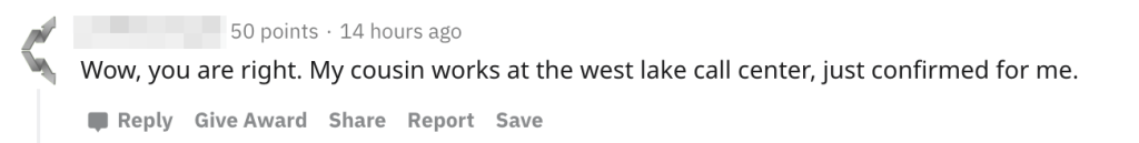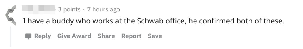 One Reddit user further suggested the Fidelity rumors to be baseless, citing a significant other that works at those offices. We preserved that comment in the screenshot below. This user corroborated the Charles Schwab case, but was notified by their own employer — a nearby brokerage firm. Another commenter said their friend works at the Charles Schwab Westlake office and also “messaged this morning that his office as a case of COVID-19.”